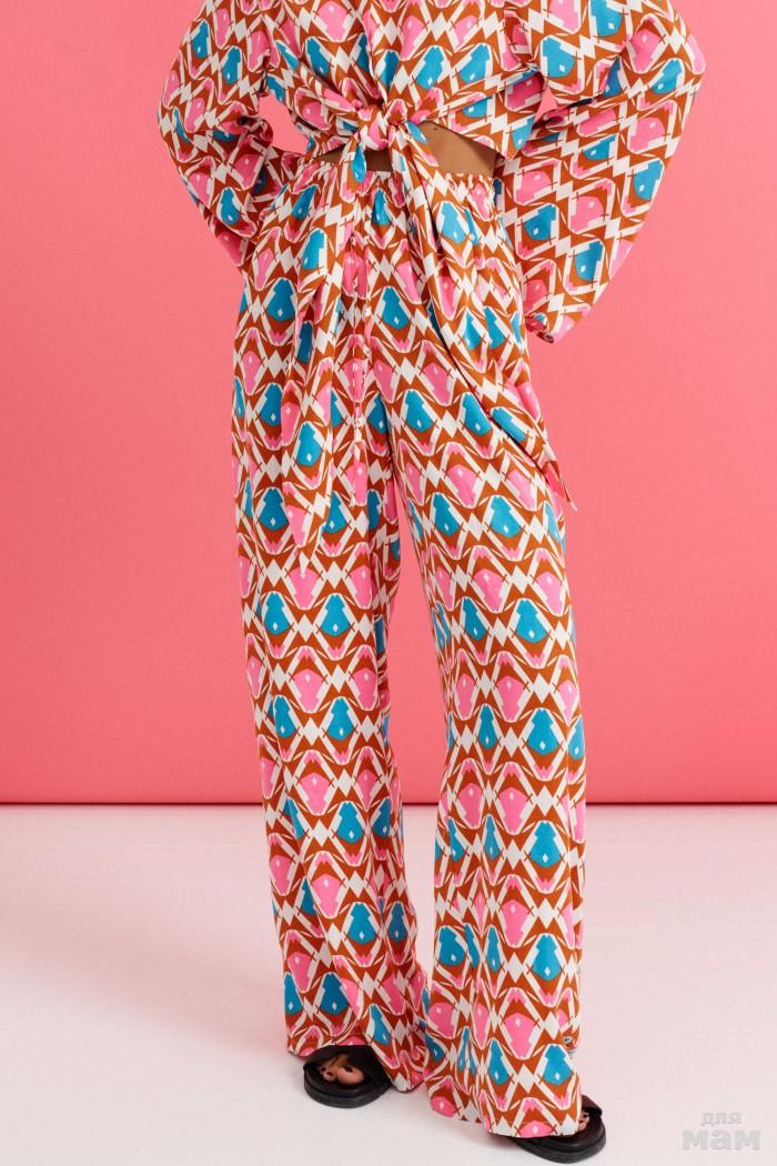 Брюки прямого свободного кроя выполнены из полотна с цветочным принтом.