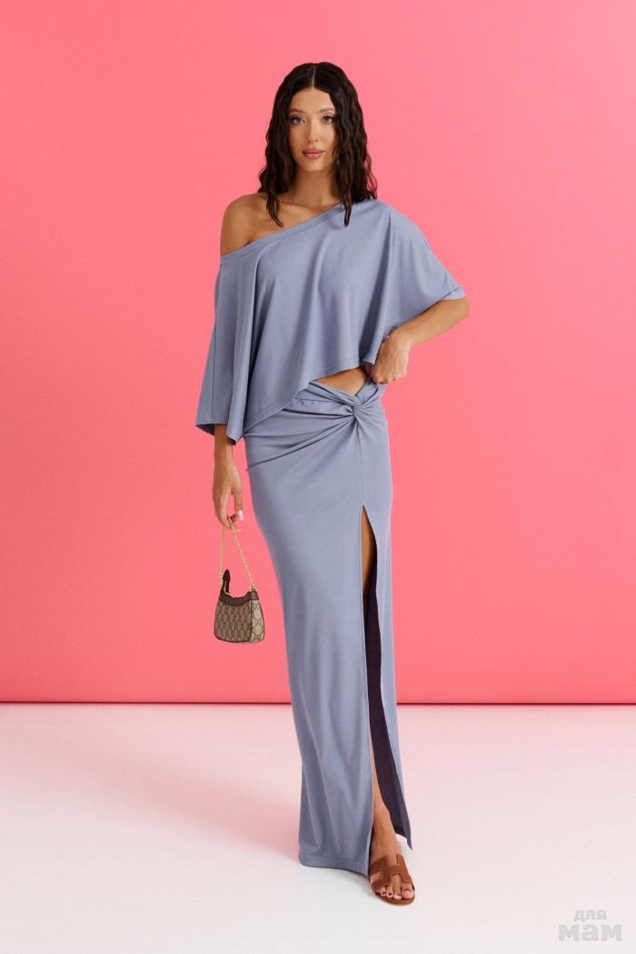 Характеристики: полуприлегающий силуэт, притачной пояс, по передней части иделия декоративный узел, акцентный разрез 80 см. Длина юбки 117 см.