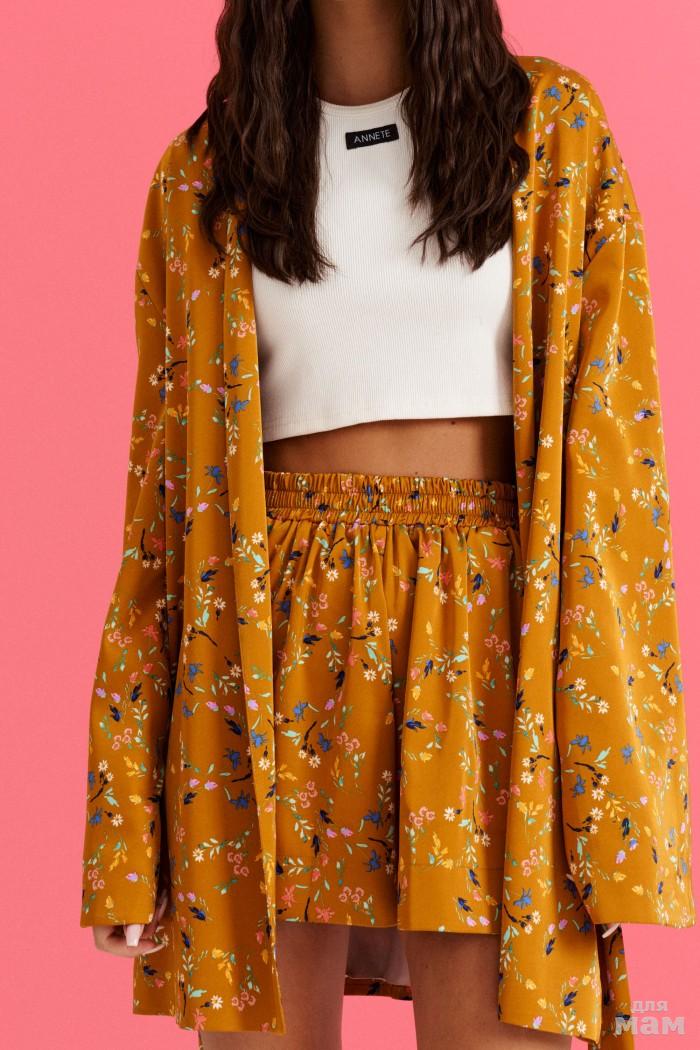Характеристики: свободный крой, А-образный силуэт, пояс на широкой резинке с кулиской. Длина 91 см.