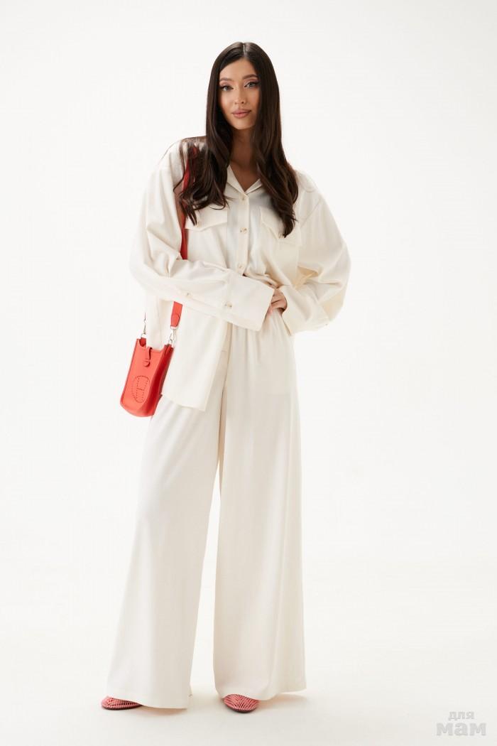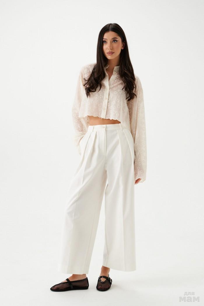 Брюки прямого свободного кроя выполнены из полотна белого цвета. Стильный базовый элемент гардероба.