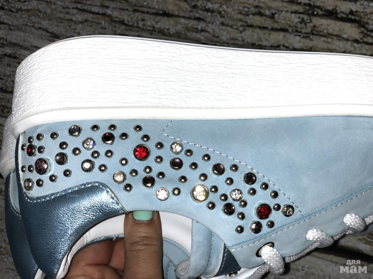 вот тут самый приближенный цвет к оригиналу , но все равно не точный. Мятный цвет чуть ярче в жизни . Такая же колодка как и у белых выше. Идут в размер, очень удобные, есть не большая танкетка. Камни рекомендую сразу подклеить иначе потеряете.Вся кожа с мелкими блестками , очень нежно смотрятся( на фото из не видно)