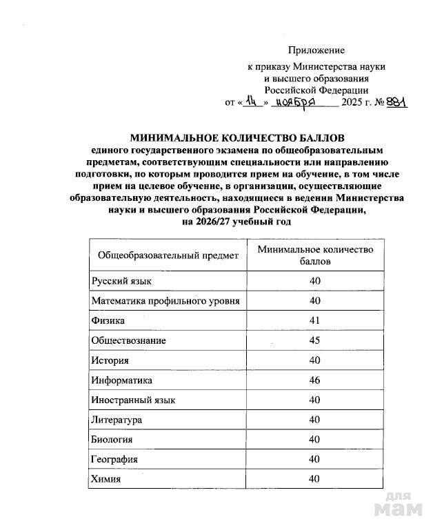 🖍️Ведомство повысило минимальные баллы по шести предметам — химии, биологии, физике, информатике, истории и иностранному языку.