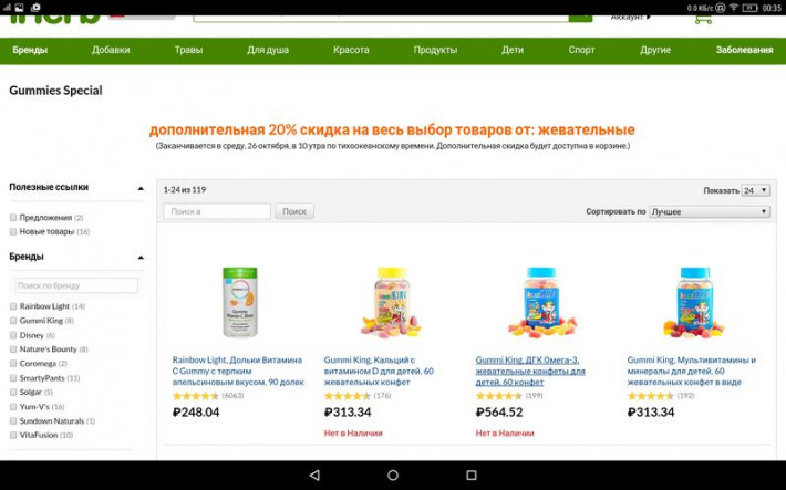 Сейчас на сайте действует дополнительная скидка 20% на различные детские жевательные витамины.