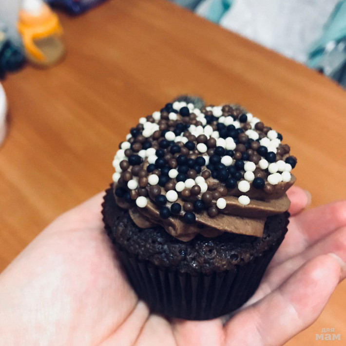 Мега -шоколадные капкейки к шоколадным кремом и шоколадными шариками