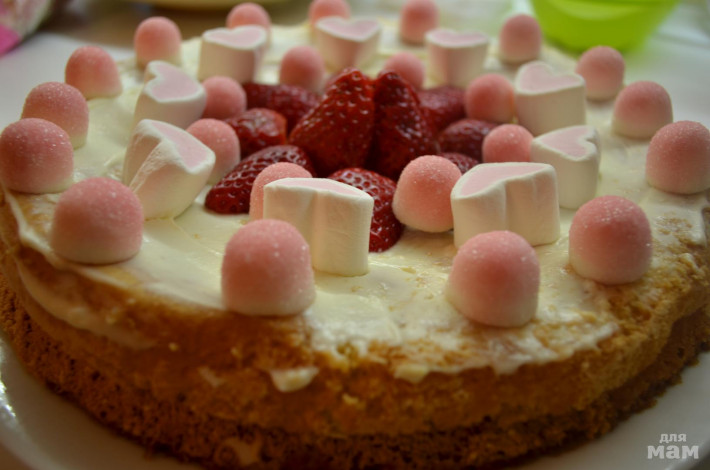 Вот такой получился тортик на бегу, было 30 мин до обеда и 15 минут вечером, решила порадовать маму в ее 64-летие