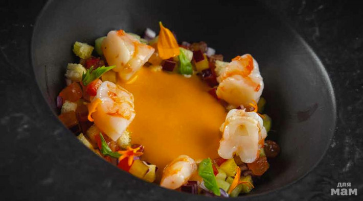 Я предлагаю подавать гаспачо как тапас (закуску) — чтобы ложкой черпать настроение Средиземноморья. Для этого очищенные от кожуры и семечек помидоры, огурцы и перец нарезаем, смешиваем и ставим в холодильник на пару часов. После всё измельчаем в блендере и протираем через мелкое сито — для од...