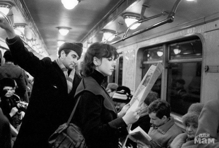 Не то что сейчас - все сидят, уткнувшись в телефоны.