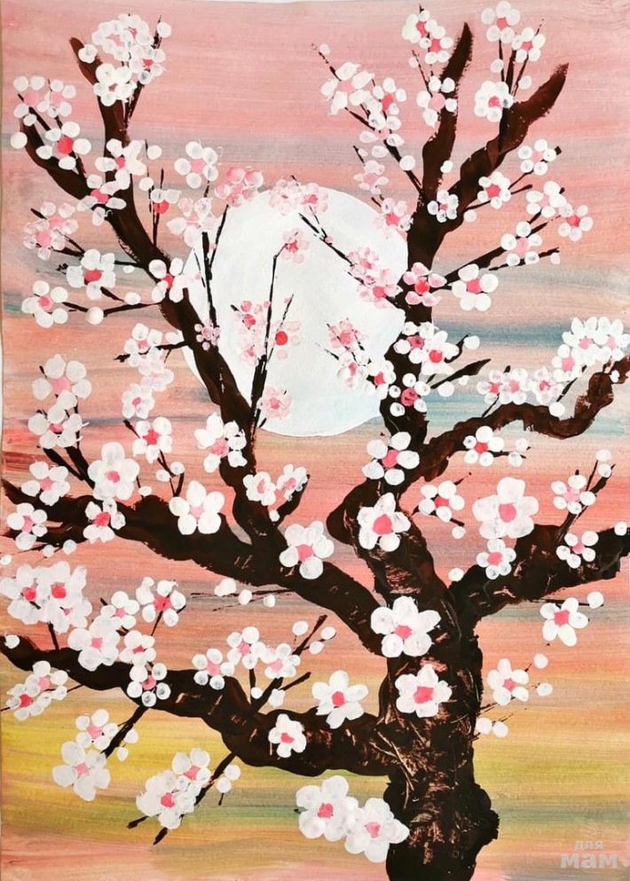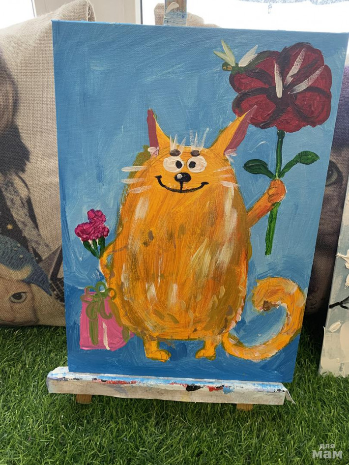 Согласитесь, очень оригинально. На холсте объемные цветы, работа буквально воздушная. Но так не получилось даже у преподавателя:)