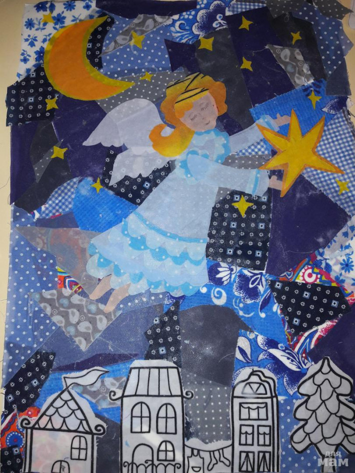 Ангел выполнен в лоскутной технике ))) дочка нарисовала ангела и родилась идея сотворить такую картину