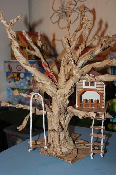Начала потихоньку готовиться) Домик на дереве для адвента.Еще не все доделала,бумажные пакеты закончились(( планирую еще 1-2 домика добавить,но уже поменьше размером,сделать на стволе дверь и окна из пластилина.