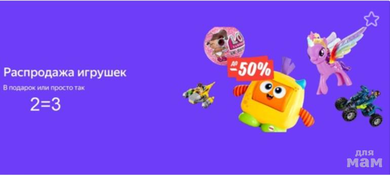 Распродажа игрушек -50% и акция 3=2