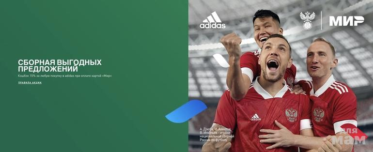 Кэшбэк 15% за любую покупку в adidas при оплате картой «Мир»