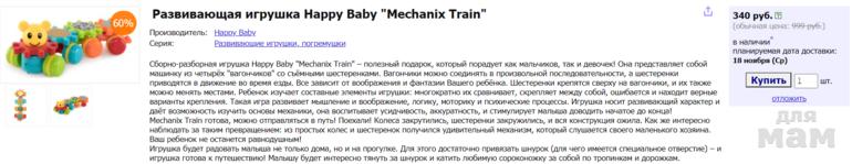 Развивающая игрушка Happy Baby "Mechanix Train" -60%