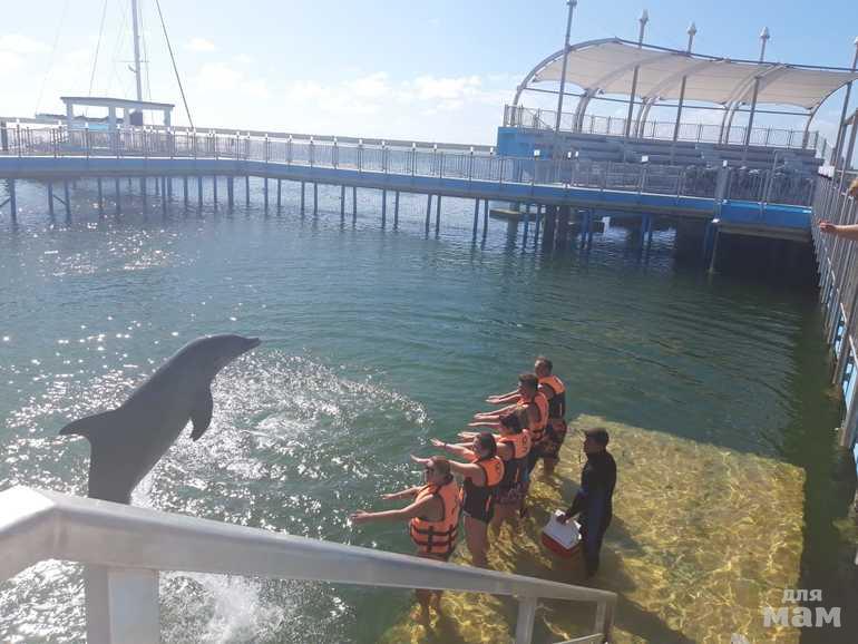 есть дельфинарий и там общение с дельфинами и возможно купание!