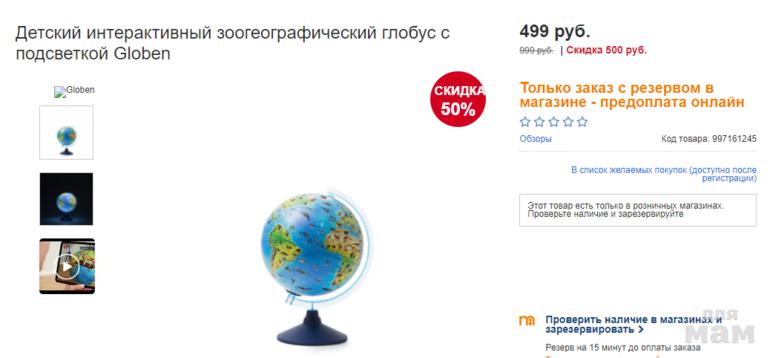 Скидка 50% на Детский интерактивный зоогеографический глобус с подсветкой Globen