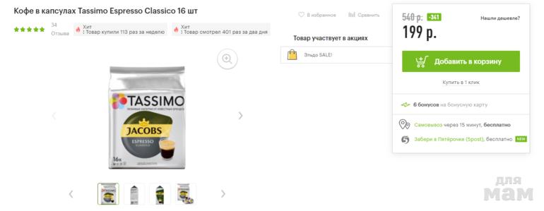 Кофе в капсулах Tassimo Espresso Classico 16 шт за 199 р