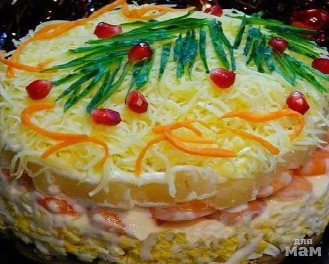 Салат “Фантазия” — это такая легкая и непринужденная вариация праздничного салатика. Все, кто любит эксперименты, обязательно оценит такой салат и возьмет себе на заметку.