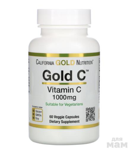 California Gold Nutrition, Gold C, витамин C, 1000 мг, 60 растительных капсул -50%