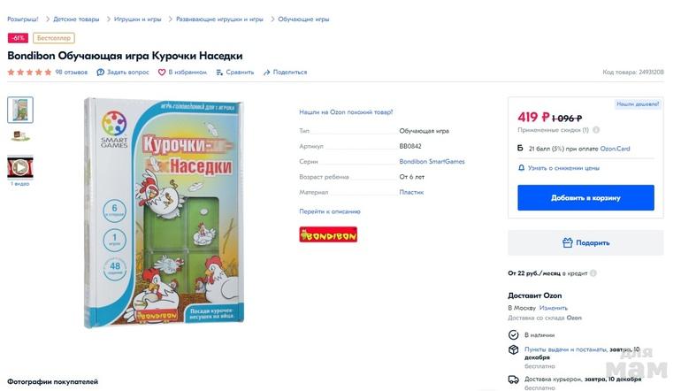 Bondibon Обучающая игра Курочки Наседки 419 р