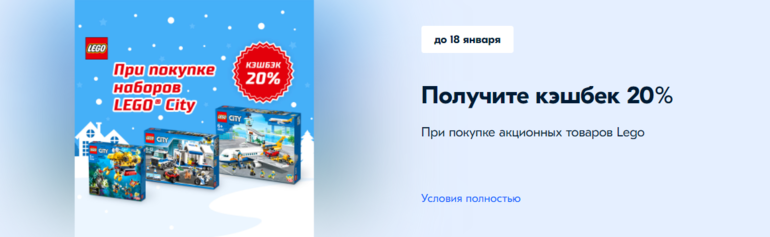 Получите кэшбек 20% при покупке Lego