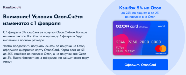 Изменение с 1 февраля условий Ozon.Cчёта