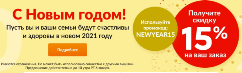 NEWYEAR15 - в честь Нового года скидка 15% на ваш заказ!