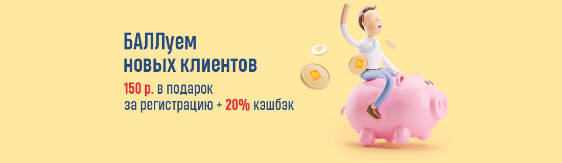 150 р. в подарок за регистрацию + 20% кэшбэк