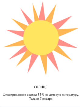 СОЛНЦЕ — фиксированная скидка 35% на детскую литературу.