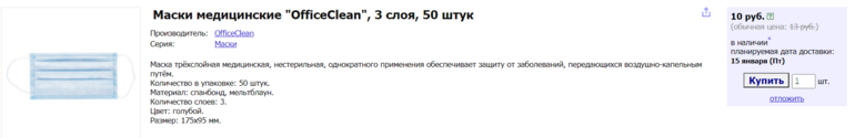 Маски медицинские "OfficeClean", 3 слоя, 50 штук - 13 руб