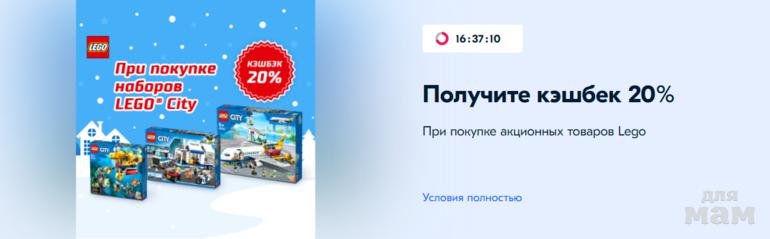 Кэшбек 20% при покупке акционных товаров Lego
