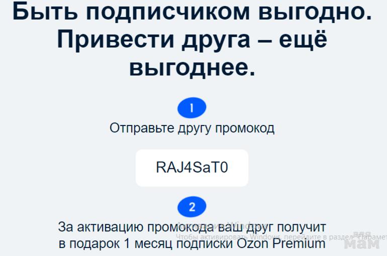 2. За активацию промокода ваш друг получит в подарок 1 месяц подписки Ozon Premium