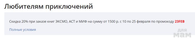 Скидка 20% при заказе книг ЭКСМО, АСТ и МИФ на сумму от 1500 р.