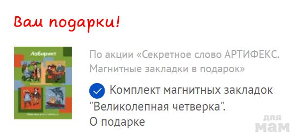 АРТИФЕКС — набор магнитных закладок "Великолепная четверка" в подарок к заказу от 1000 р.
