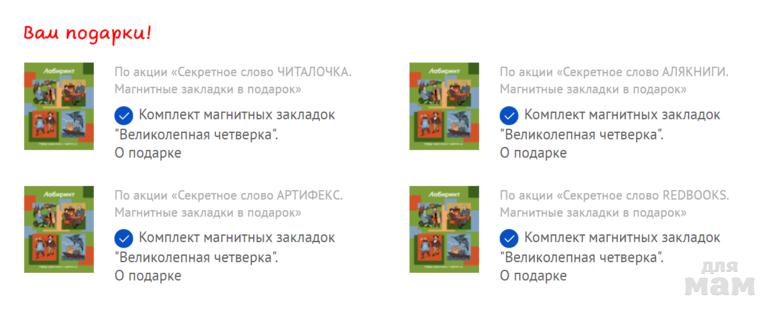 ЧИТАЛОЧКА — набор магнитных закладок "Великолепная четверка" в подарок к заказу от 1000 р.