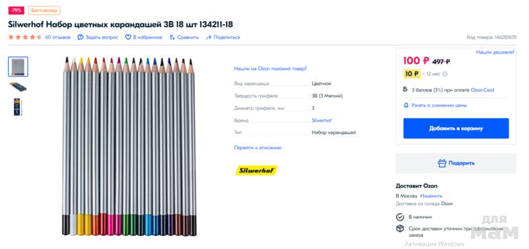 Silwerhof Набор цветных карандашей 3B 18 шт за 100 руб