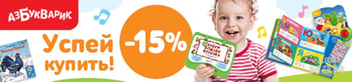 Скидка 15% на интерактивные книжки и конструкторы компании «Азбукварик»