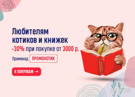 Любителям котиков и книжек: скидка 30% при покупке от 3000 р.