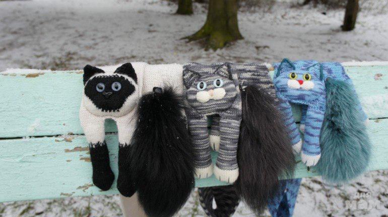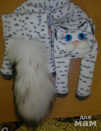 В младенчестве сына фанатела шапочками Chobi, и как то сын попросил у меня "сафик котю".)) Нужно было связующее звено - хвост из натурального меха. Рукодельницы не брались за такой заказ. Пришлось самой пытаться изобрести нечто похожее на кота.))))