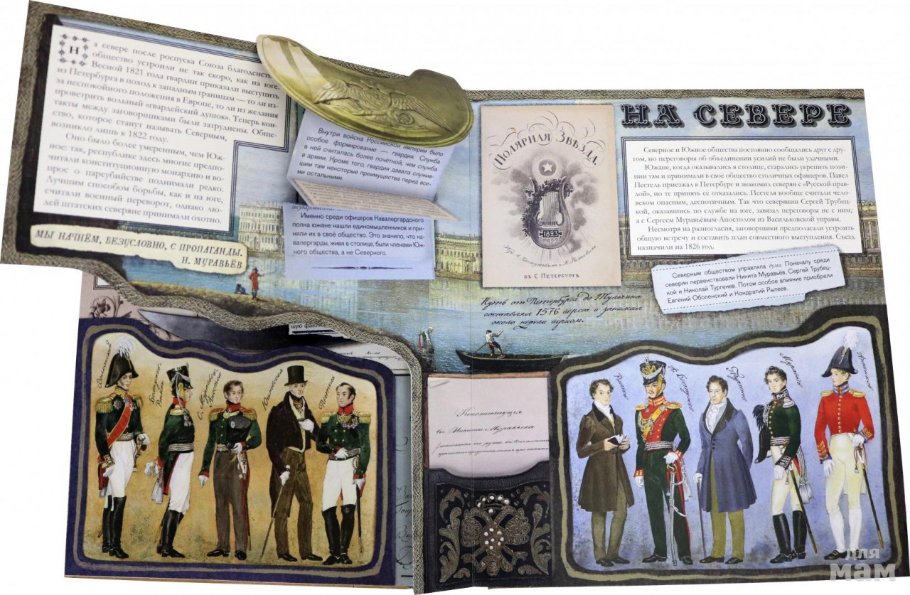 Это книга, в которой целая эпоха предстает в портретах и гравюрах, письмах и воспоминаниях, подлинных музейных предметах, документах и картах. О декабристах и их времени здесь рассказано так, что читатель будто сам становится свидетелем эпохи и знакомится со всеми участниками событий: с императорами, членами тайных обществ, участниками восстаний декабристов и их современниками. Объемные иллюстрации позволяют увидеть, где происходили важные исторические события, а интерактивное устройство страниц позволяет рассказать обо всем максимально логично, подробно и понятно.