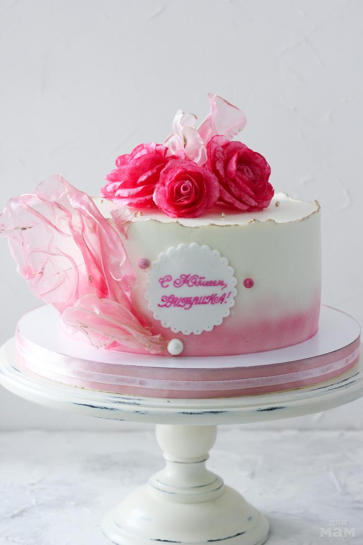 Внутри «Клубника-бэйлис»(ванильные коржи с пропиткой бэйлис, клубничный мусс, клубничное конфи, крем-чиз с ликером). Покрытие-крем-чиз. Декор-вафельные цветы, паруса из рисовой бумаги.