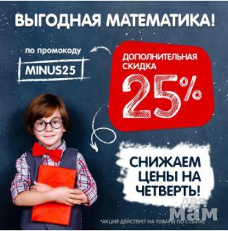 Допскидка 25% по промокоду MINUS25 на тысячи детских товаров