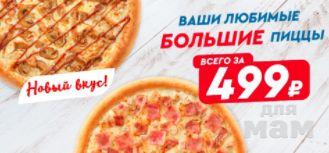 В акции участвуют пиццы Пепперони по-деревенски, Сырная с ветчиной, 3 мяса, Карамельный Ананас, Карбонара, М.Гурме, Маргарита, Пепперони, Чикен BBQ.
