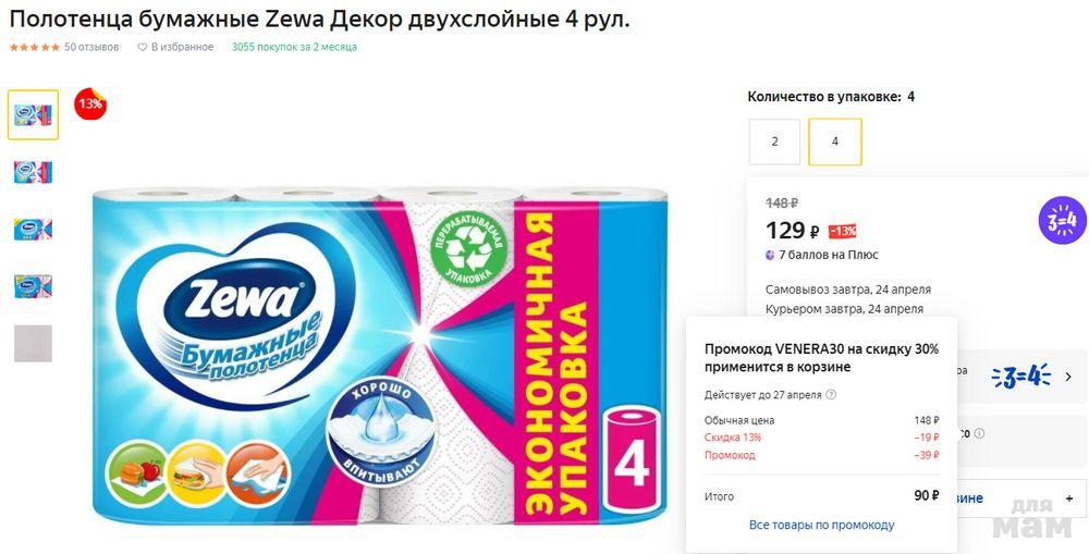 Полотенца бумажные Zewa Декор 90 р + акция 3=4