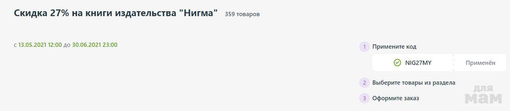 Скидка 27% на книги издательства "Нигма" по промокоду NIG27MY