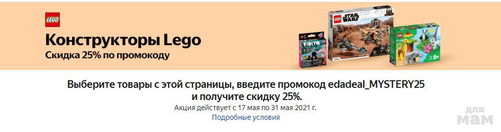 Доп.скидка 25% на LEGO по промокоду edadeal_MYSTERY25