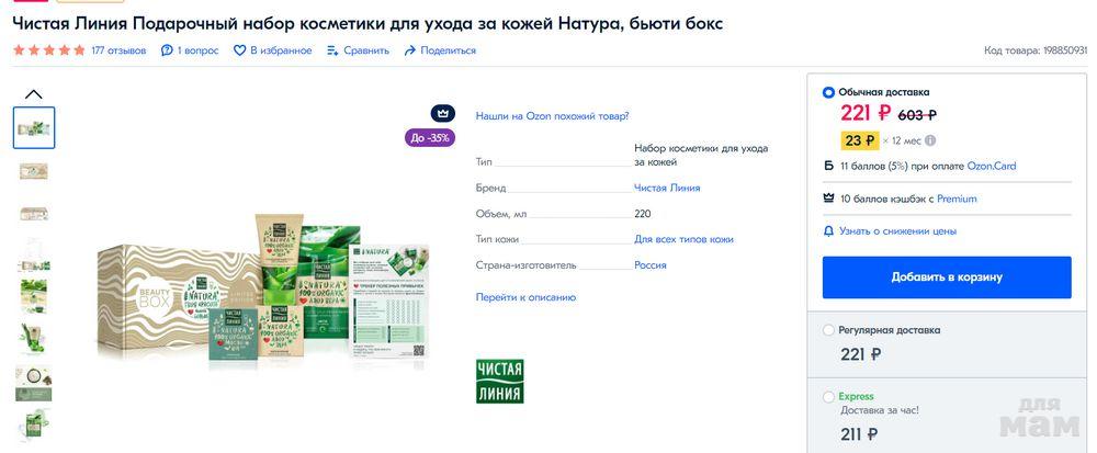 Чистая Линия Подарочный набор косметики для ухода за кожей Натура, бьюти бокс - 211 р https://vk.cc/c3yBUb
