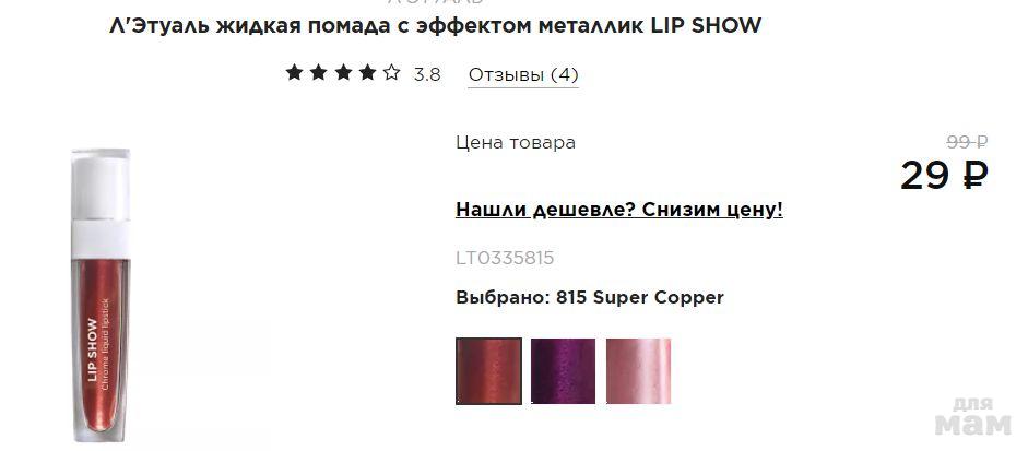 Л'Этуаль жидкая помада с эффектом металлик - 29 р https://fas.st/h8BDV