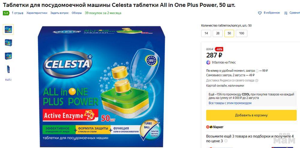 Таблетки для посудомоечной машины Celesta таблетки All in One Plus Power, 50 шт. - 287 р https://fas.st/4myJ2