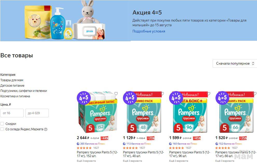 3=4 на товары на каждый день (продукты питания, бытовая химия, товары для красоты и пр.):