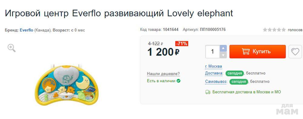 Игровой центр Everflo развивающий Lovely elephant -71% https://fas.st/wG-ND